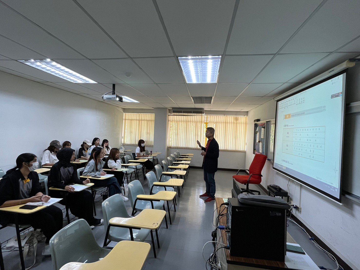 งานศูนย์ภาษา จัดอบรมหลักสูตรภาษาจีนในชีวิตประจำวัน และหลักสูตรภาษาเกาหลีเบื้องต้นเพื่อการสื่อสารสำหรับนักศึกษา ภาคการศึกษาที่ 1/2566 จำนวน 20 ชั่วโมง ระหว่างวันที่ 12 กรกฎาคม ถึงวันที่ 30 สิงหาคม 2566 ณ ห้องอบรม อาคาร 29
