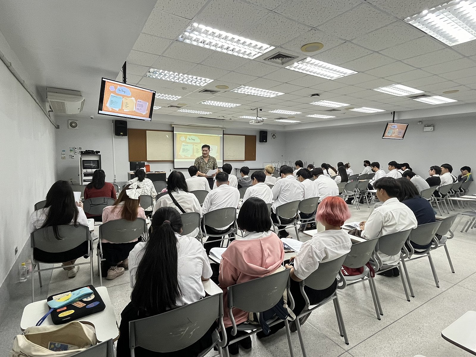 วันที่ 22 - 24 มกราคม 2567 งานศูนย์ภาษา สำนักวิทยบริการและเทคโนโลยีสารสนเทศจัดอบรมภาษาอังกฤษ "สัปดาห์กิจกรรมพัฒนาทักษะภาษาอังกฤษ" สำหรับนักศึกษาชั้นปีที่ 2 ภาคการศึกษาที่ 2/2566 ณ ห้องอบรมชั้น 5-6 อาคาร 28